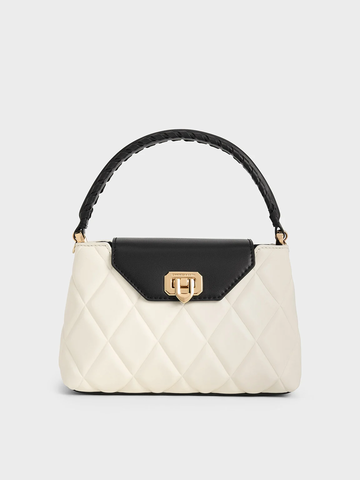Charles & Keith Black Arwen Quilted Braided-Strap Top Handle Bag CK2-50782379